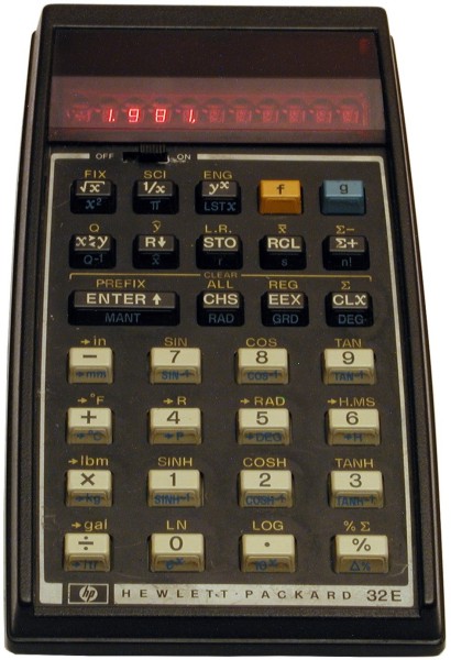 I got this calculator together with 3 other HP-32E. (Thanks, Thierry!) It is the earlier version of the HP-32E, which is a bit heavier than later models.